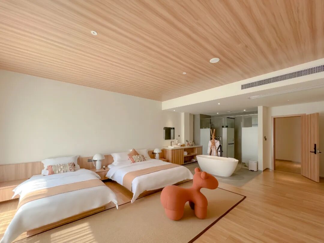 舒适的床品保证您享有优质的睡眠,所有房间配备干湿分离的智能卫浴,为宾客提供便捷的居住体验,和亲人一起惬意享受相聚幸福时刻。
