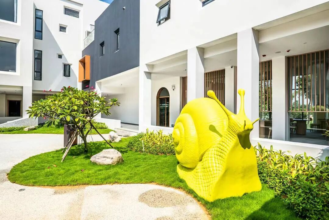 房间以纯净白色为基调,营造开阔明亮的空间感。巧妙点缀的蜗牛元素串联起室内外、四季与代际,带来轻盈自然的童趣氛围。在这里,收获的不仅是一间房,更是一方隐逸天地与诗意时光。