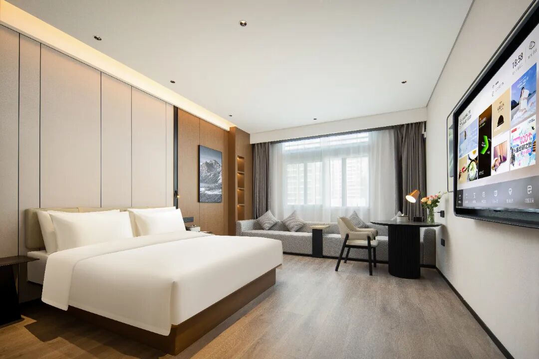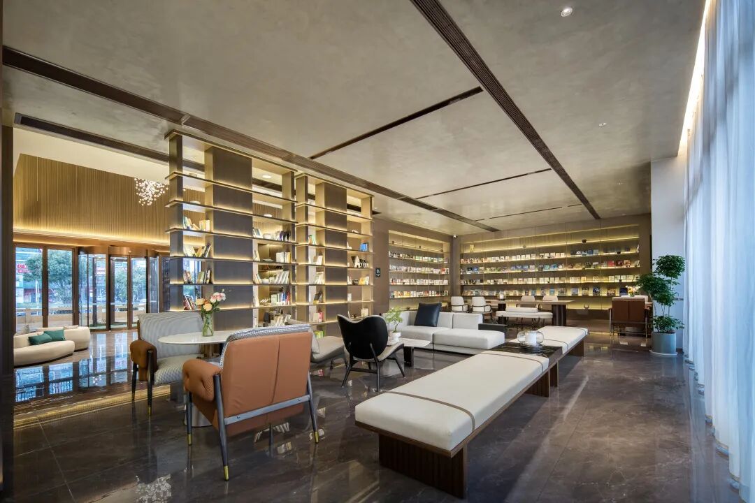 酒店以"书香入梦"为设计灵魂,打造沉浸式阅读空间:大堂与竹居商务区珍藏千册书籍,24小时静候品阅。配套「汗出」健身房、「出尘」自助洗衣房及「共语」会议室,以人文关怀与智能设施相融,为旅客们缔造"诗意栖居"的休憩体验。
