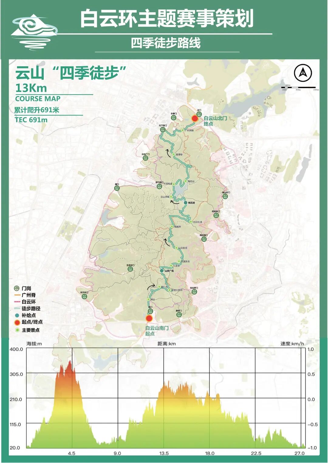 全程13km,累计爬升691m