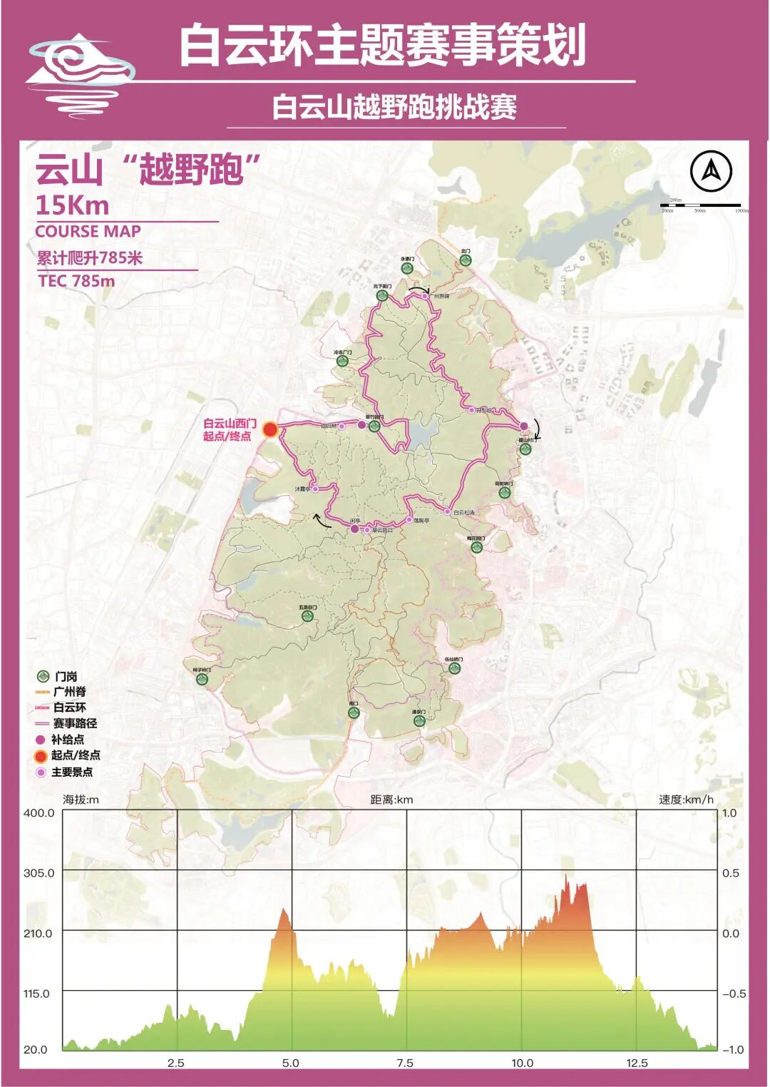 全程15km,累计爬升785m