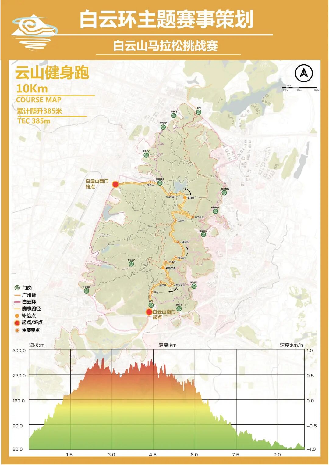 全程10km,累计爬升385m