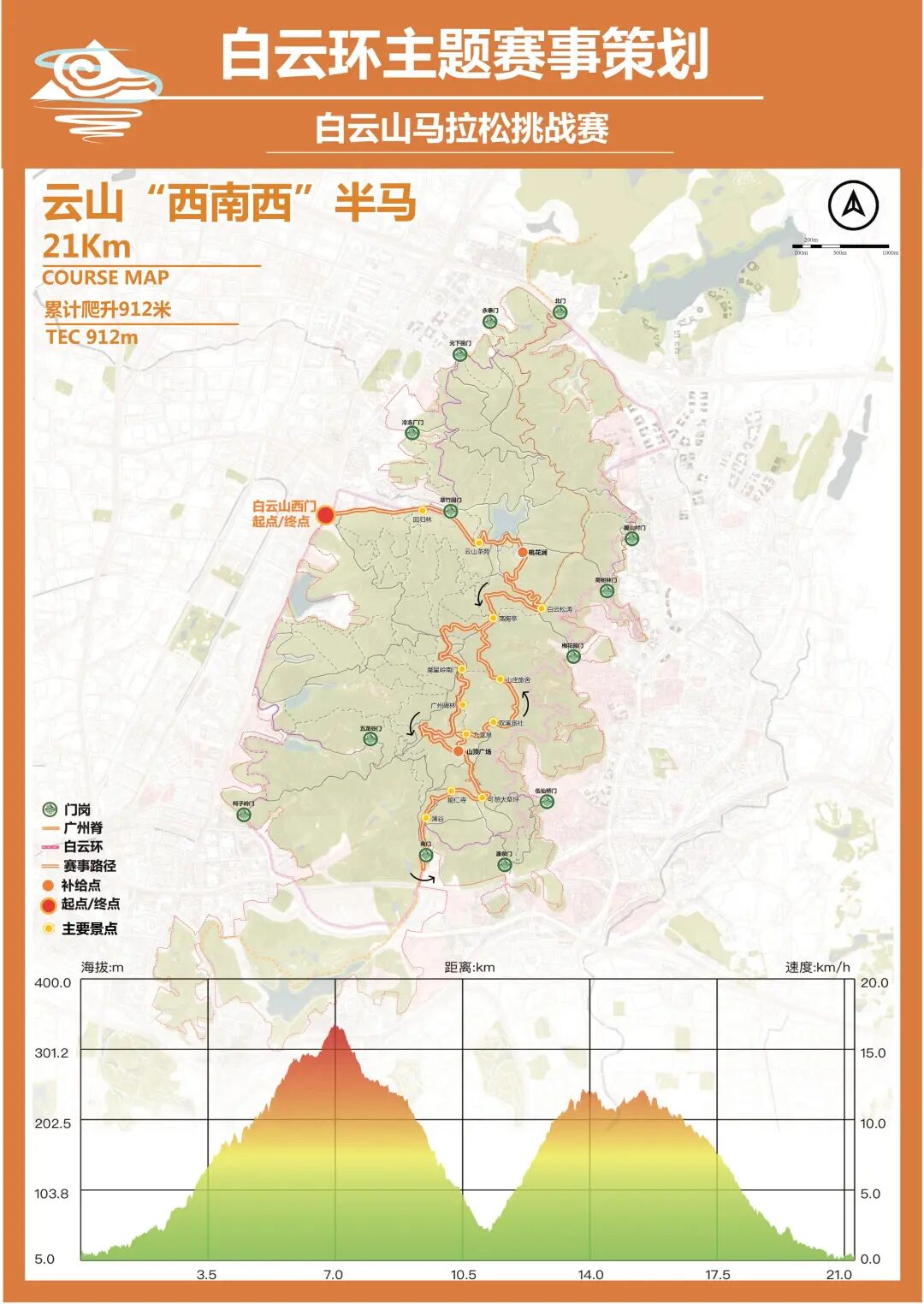 全程21km,累计爬升912m