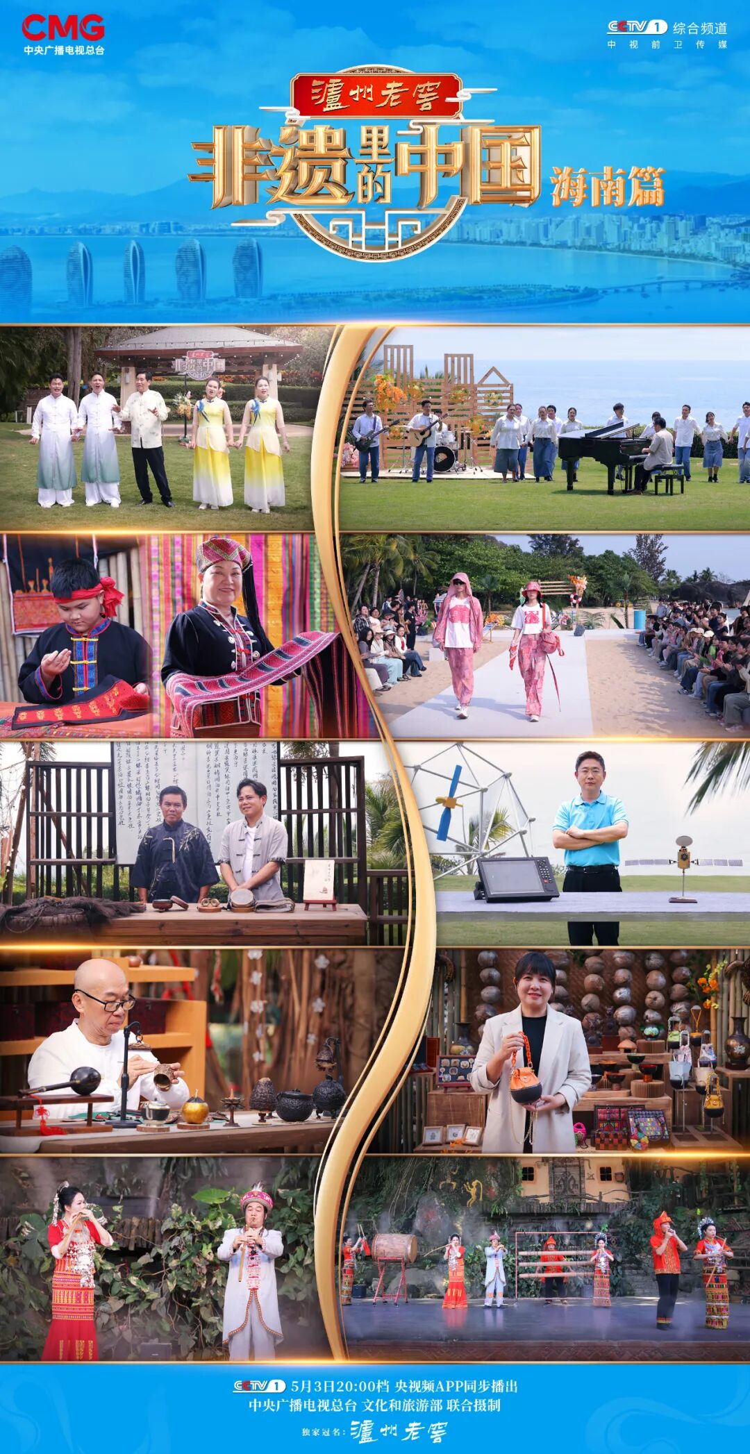 由中央广播电视总台与文化和旅游部联合摄制的大型文化节目《非遗里的中国》海南篇将于5月3日20:00档在总台综合频道(CCTV-1)播出,央视频全网独家首播。