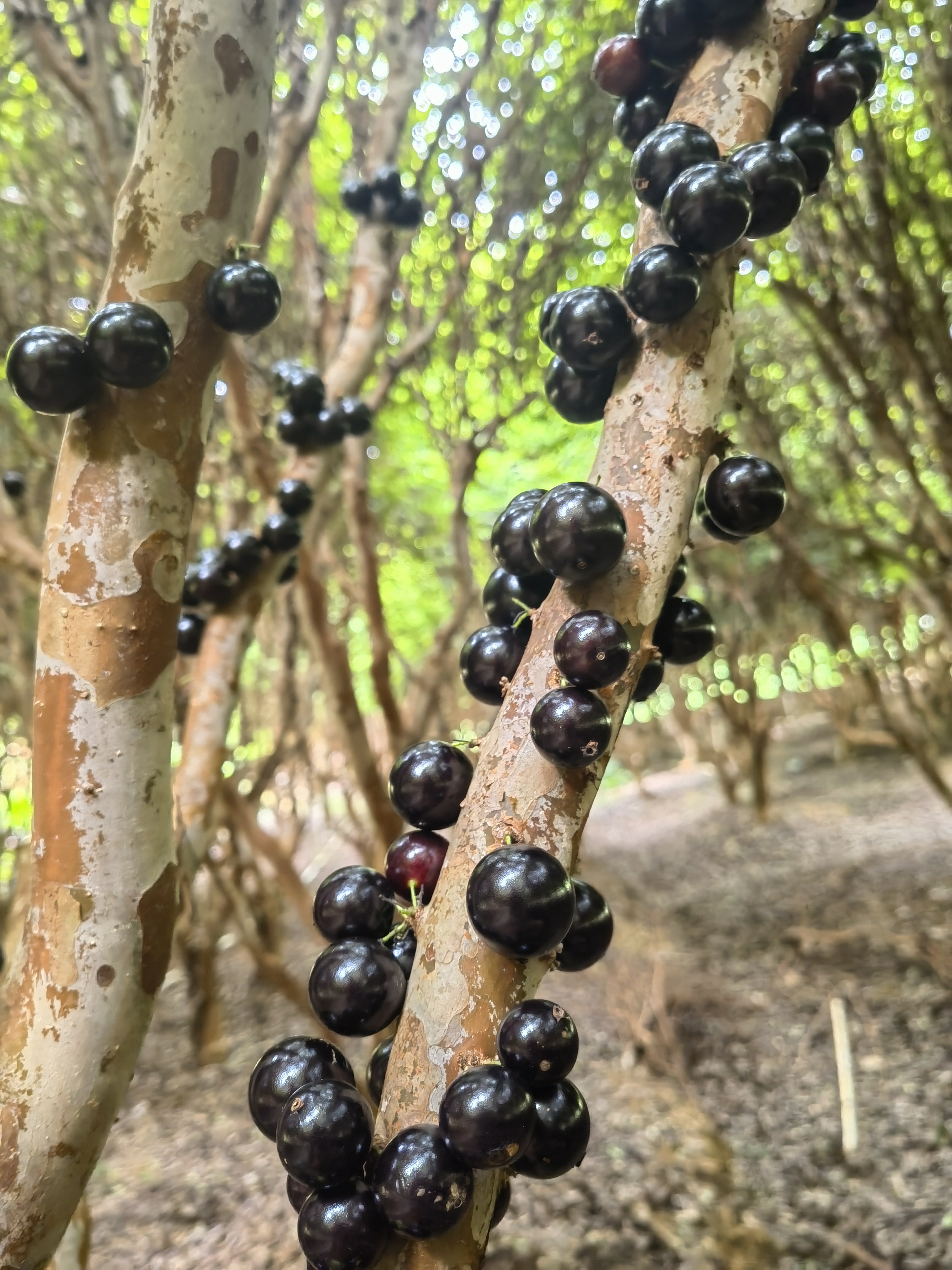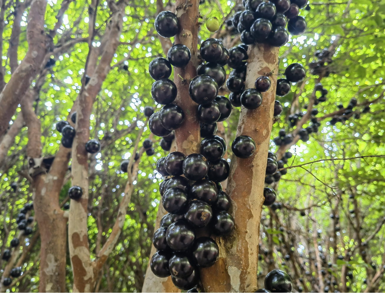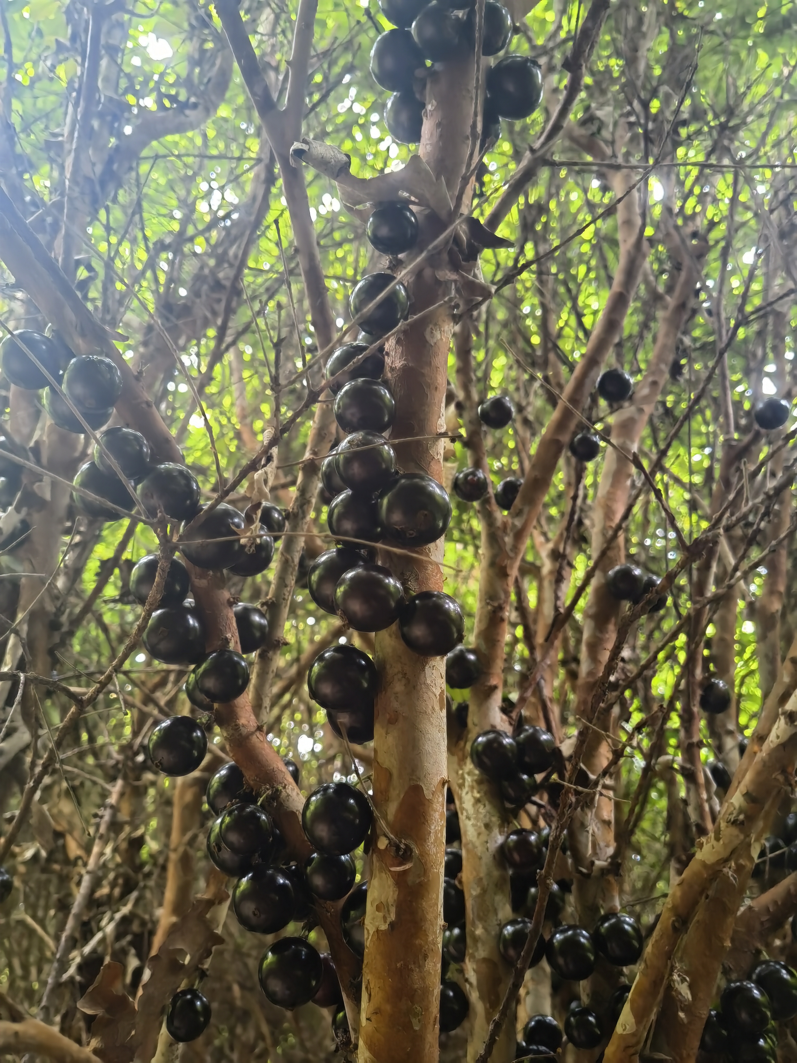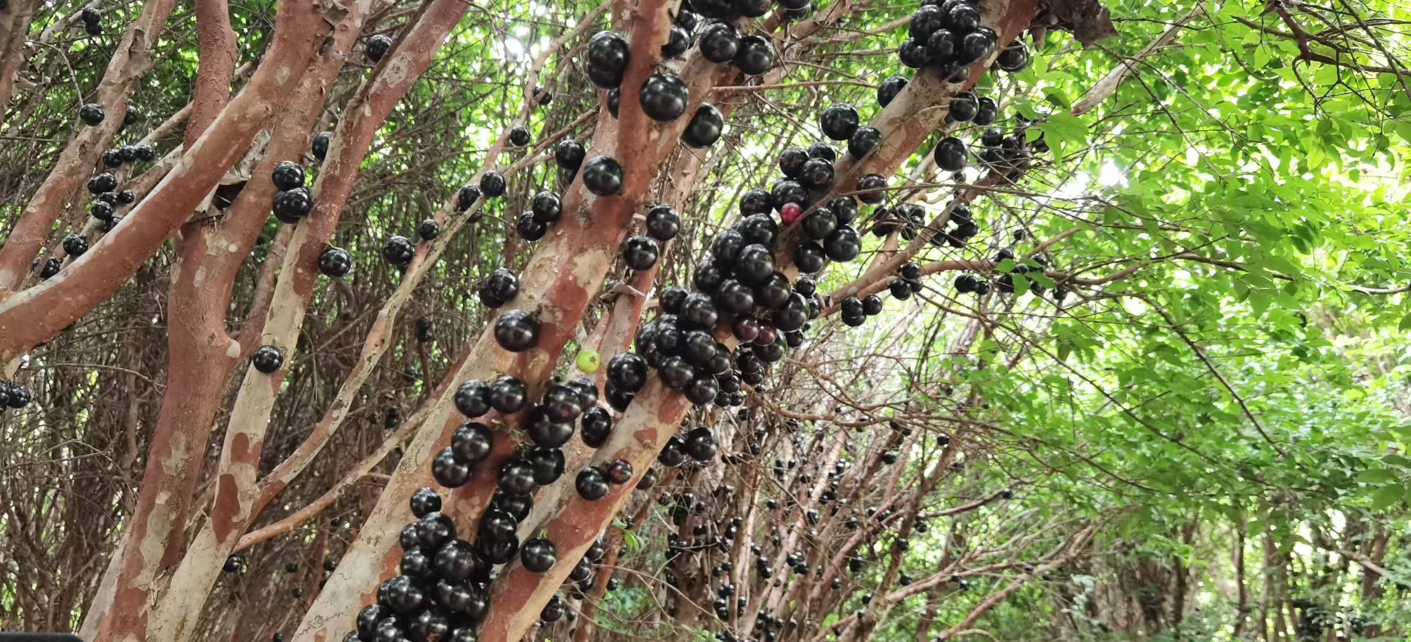 一颗颗如黑宝石般的嘉宝果挂满树干