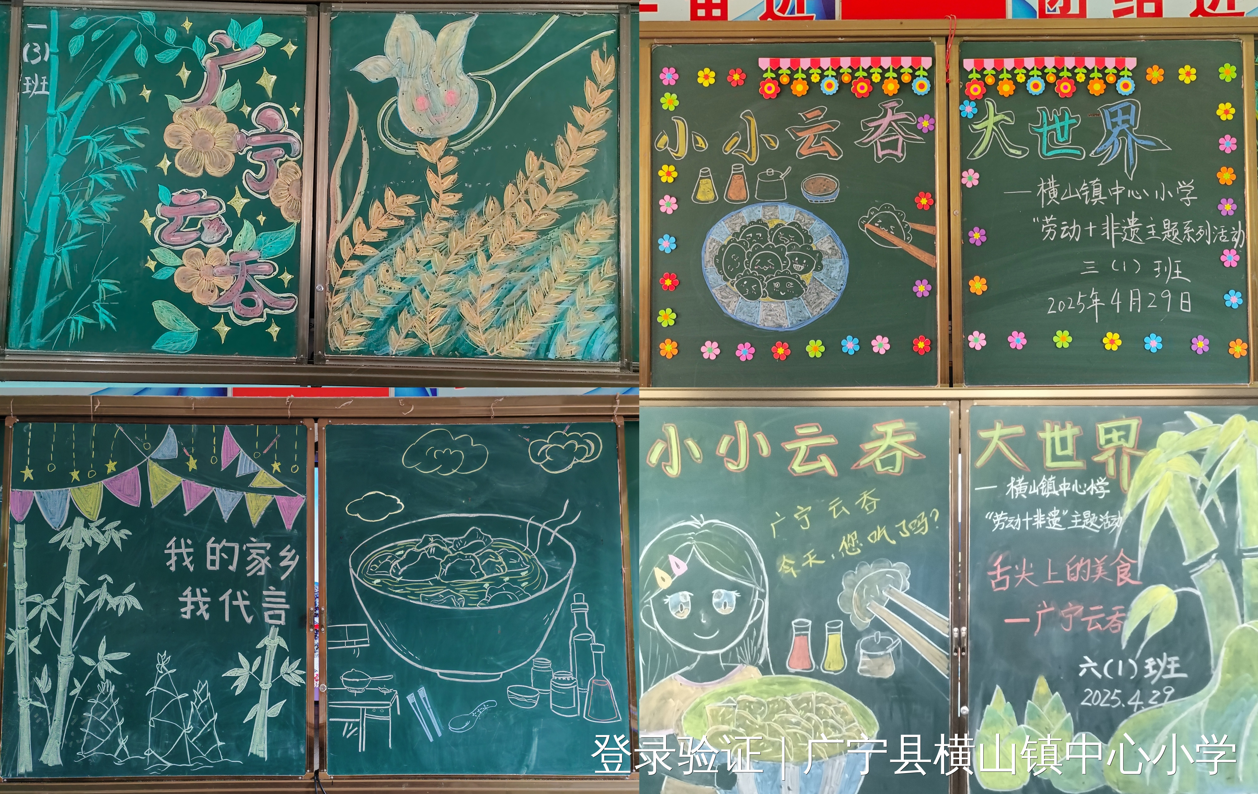 当天活动开始前,劳动教师指导学生在黑板上用图文并茂的方式呈现广宁特色美食云吞的主题板报,充分利用“我的家乡我代言”“小云吞,大智慧”“广宁云吞,您吃了吗?”等特色标语,营造浓厚的活动氛围。