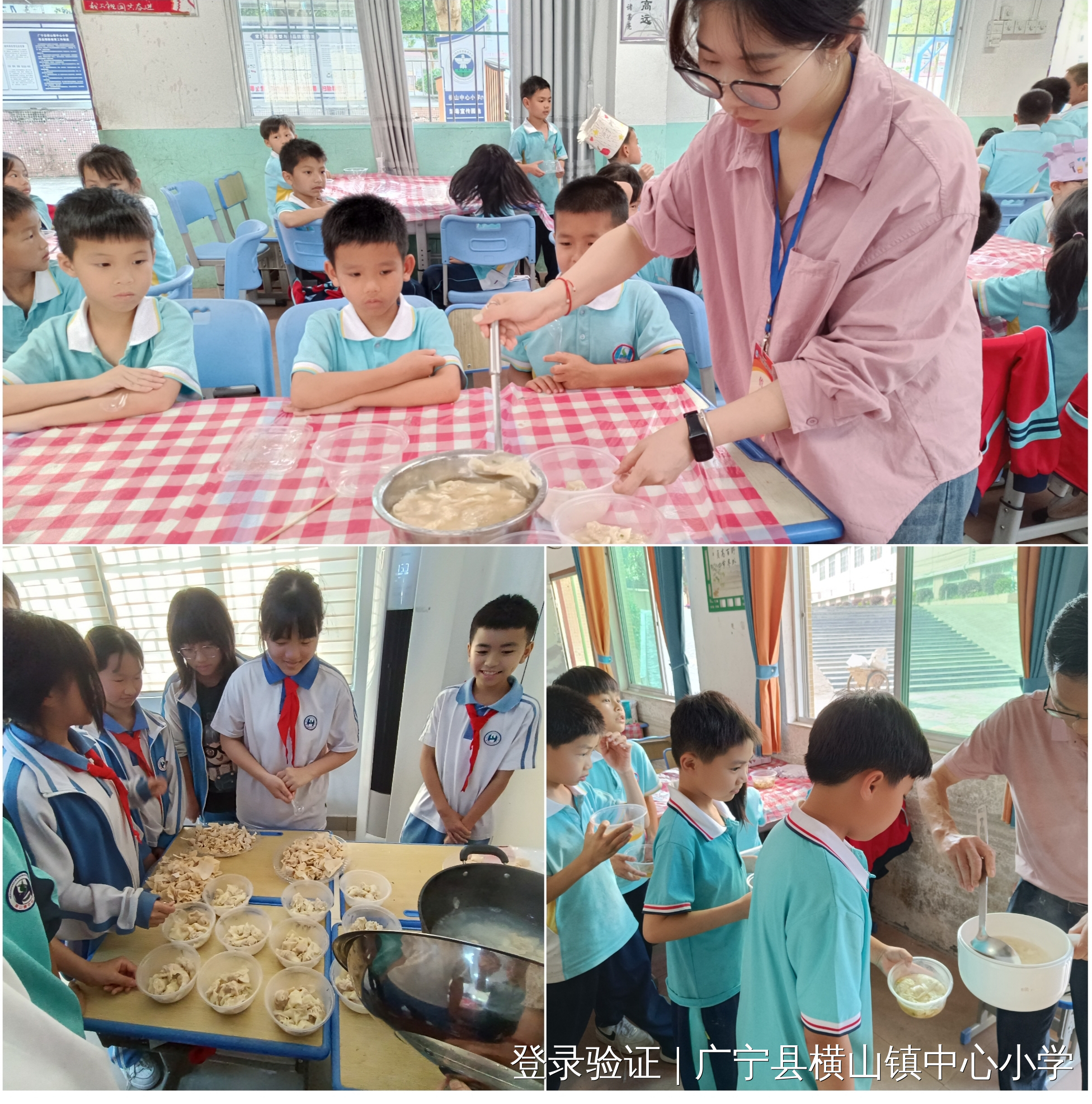 广宁云吞,每一口都是故事,每一味都是回忆。为了弘扬广宁美食,传承家乡味道,推动“劳动+非遗”主题系列活动的深入开展,探索项目式学习实施路径,培养文化自信,提升劳动素养,助推乡村振兴。2025年4月29日下午,广宁县横山镇中心小学25个班级1200多师生在各班教室举行“同上一节劳动课——广宁云吞制作品尝推广”活动。