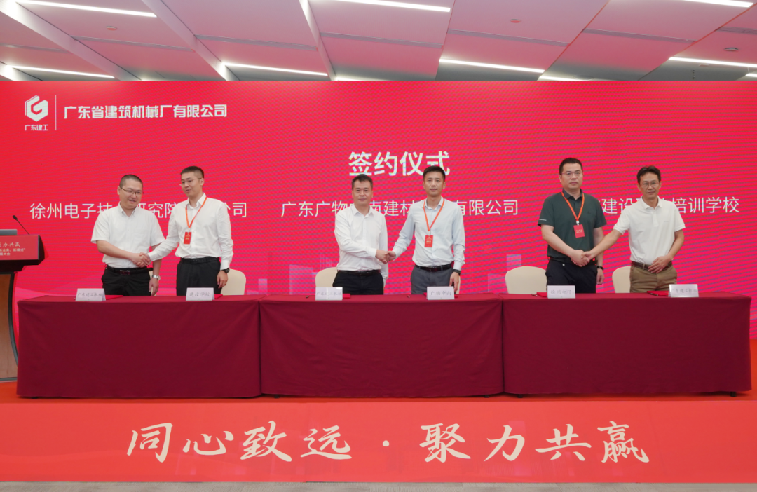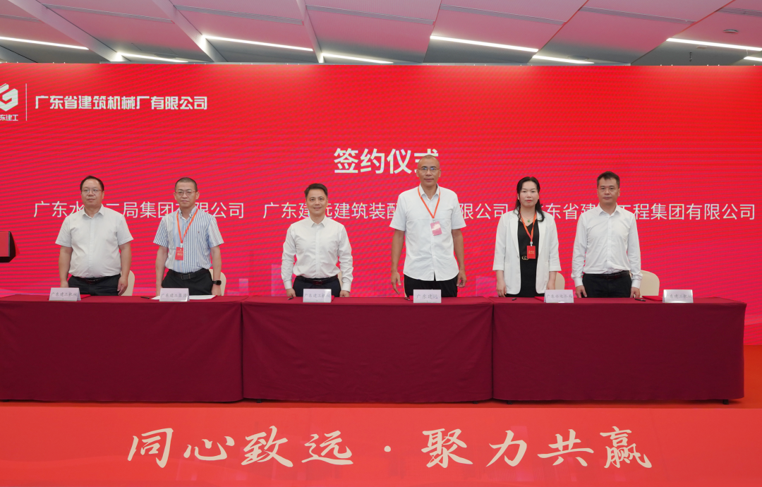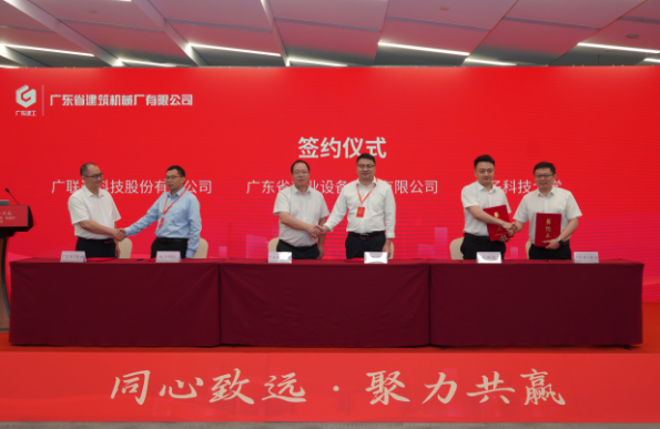 会上,广东建工机械与广东水电二局集团有限公司、广东建远建筑装配工业有限公司、广东省建筑工程集团有限公司、中建钢构股份有限公司、树根互联股份有限公司、广东庞源工程机械有限公司、广联达科技股份有限公司、广东省工业设备安装有限公司、电子科技大学等单位就广东建工建筑科技智造产业园项目、广东建机安管平台、施工综合操作平台产品等签署战略合作协议。