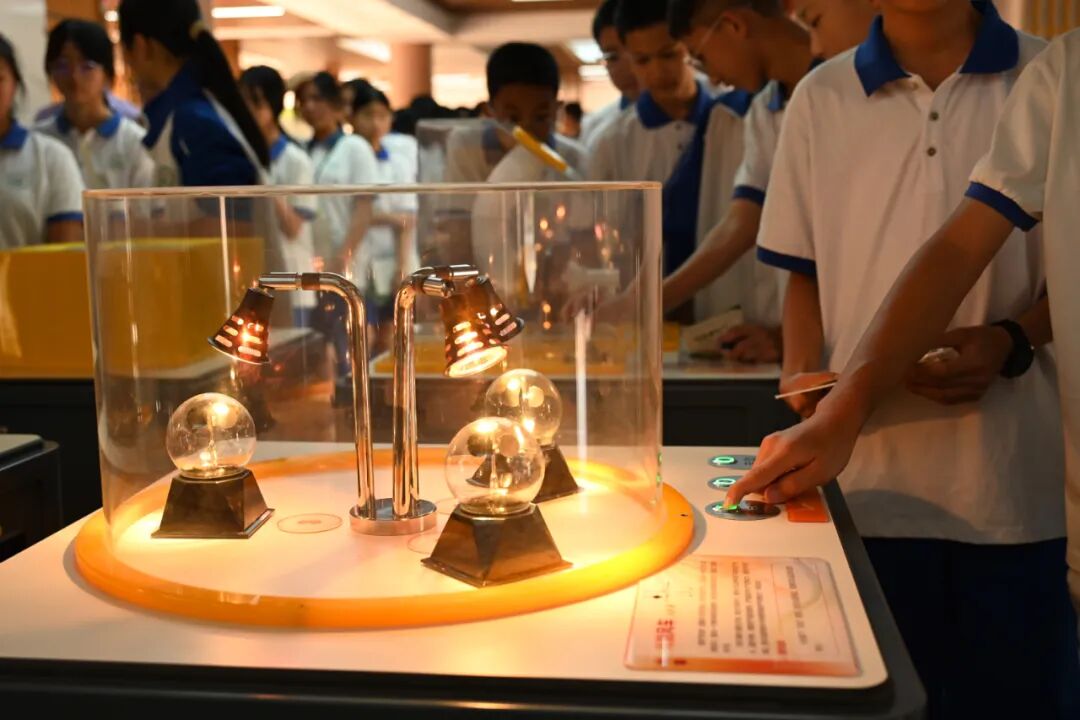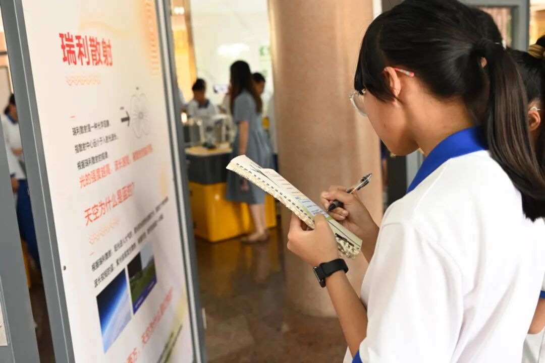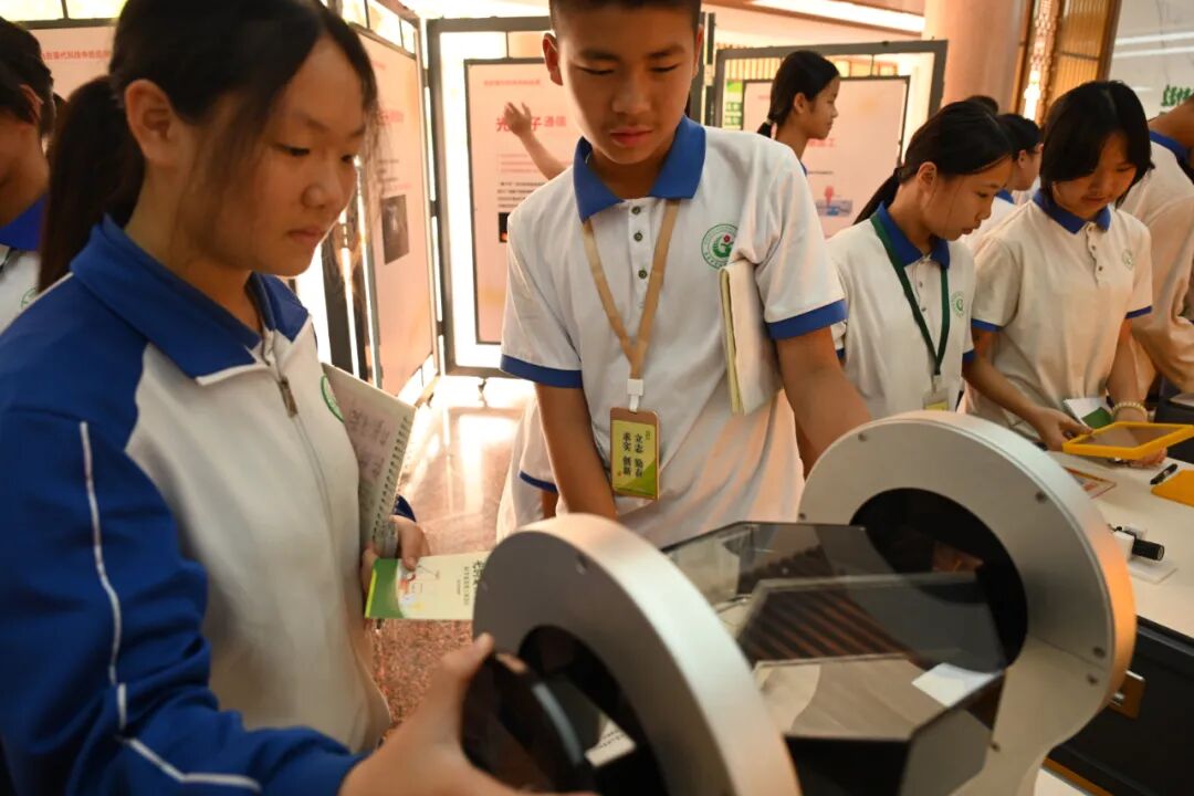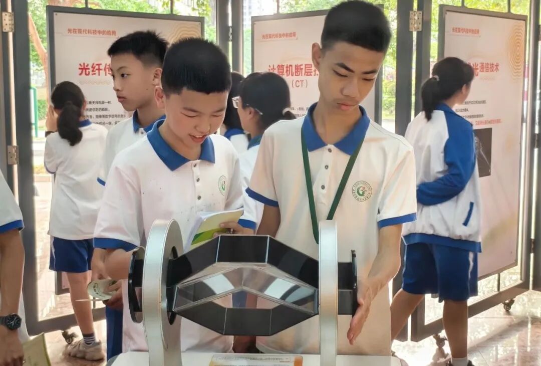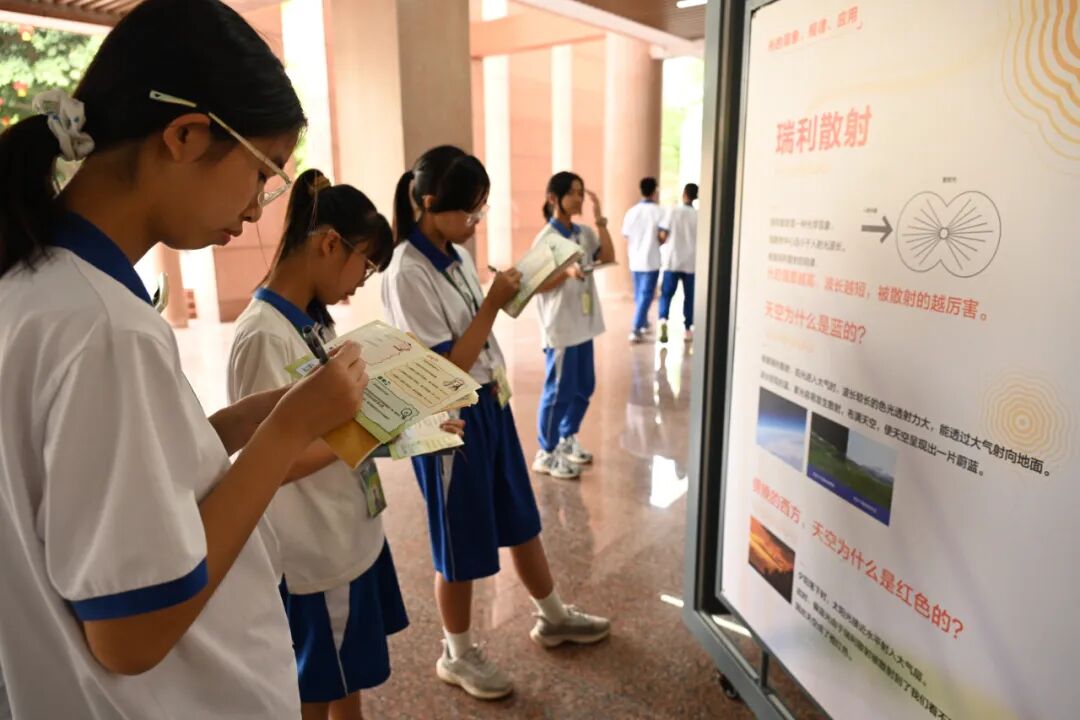 随后,同学们手持《光的奥秘探索》任务卡,分组前往各展示区,开启科学探索之旅。