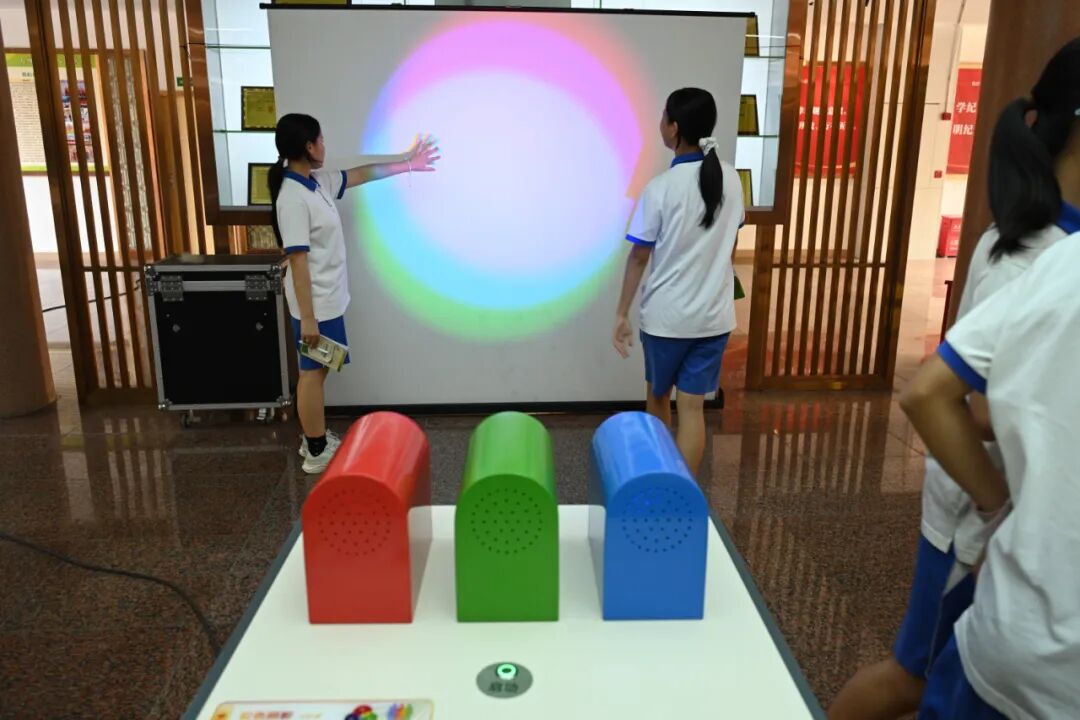 在VR沉浸式体验区,同学们戴上VR眼镜,瞬间“穿越”到浩瀚宇宙或深海秘境,享受360°沉浸式体验,感受科技的神奇。这种新颖的学习方式,让抽象知识变得触手可及,同学们乐在其中,学在其中。