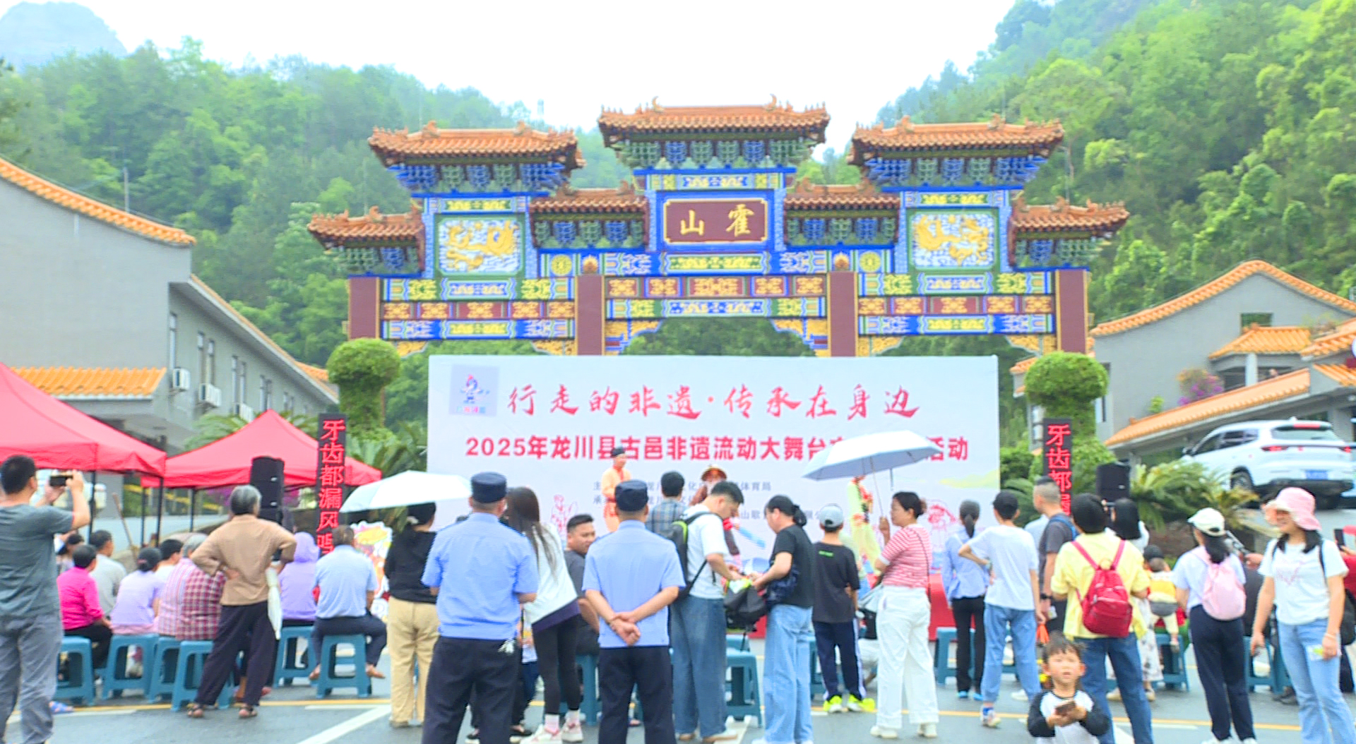 在霍山景区,客家山歌的悠扬旋律回荡在山间。非遗传承人现场献唱,用质朴而深情的歌声诉说着客家人的生活故事与情感。游客们纷纷驻足倾听,不少人还跟着节奏轻轻哼唱,沉浸在这充满客家风情的音乐世界中。游客张洁带着孩子前来游玩,原本计划爬山的他们,被这精彩的非遗表演吸引,驻足许久。“带小朋友来爬霍山,没想到这边有非遗的表演,太精彩了,孩子特别喜欢看,我们就留在这边尽情观看了。”张洁说。