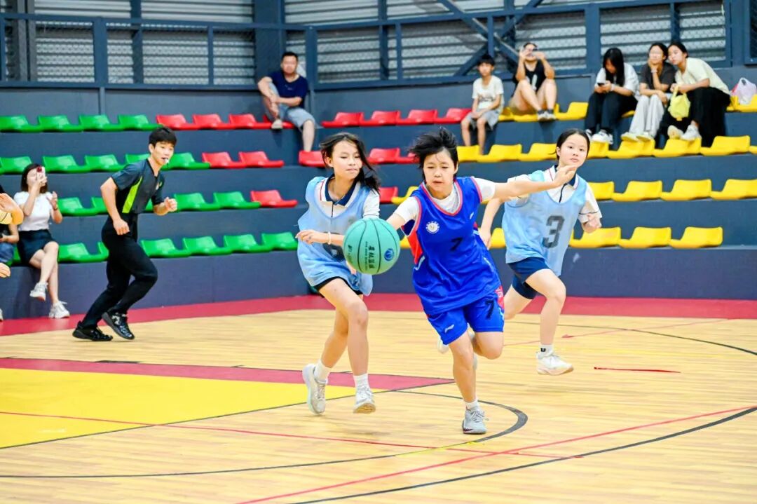 随着开幕仪式的结束,焦点之战——中山市阜沙中学与中山市牛角初级中学的对决正式打响。男女双赛场同时点燃战火,球员们如离弦之箭,突破、投篮、防守一气呵成。阜沙中学凭借流畅的进攻节奏迅速占据上风,牛角中学则凭借顽强斗志不断追分,比分胶着上升,现场呐喊声此起彼伏。