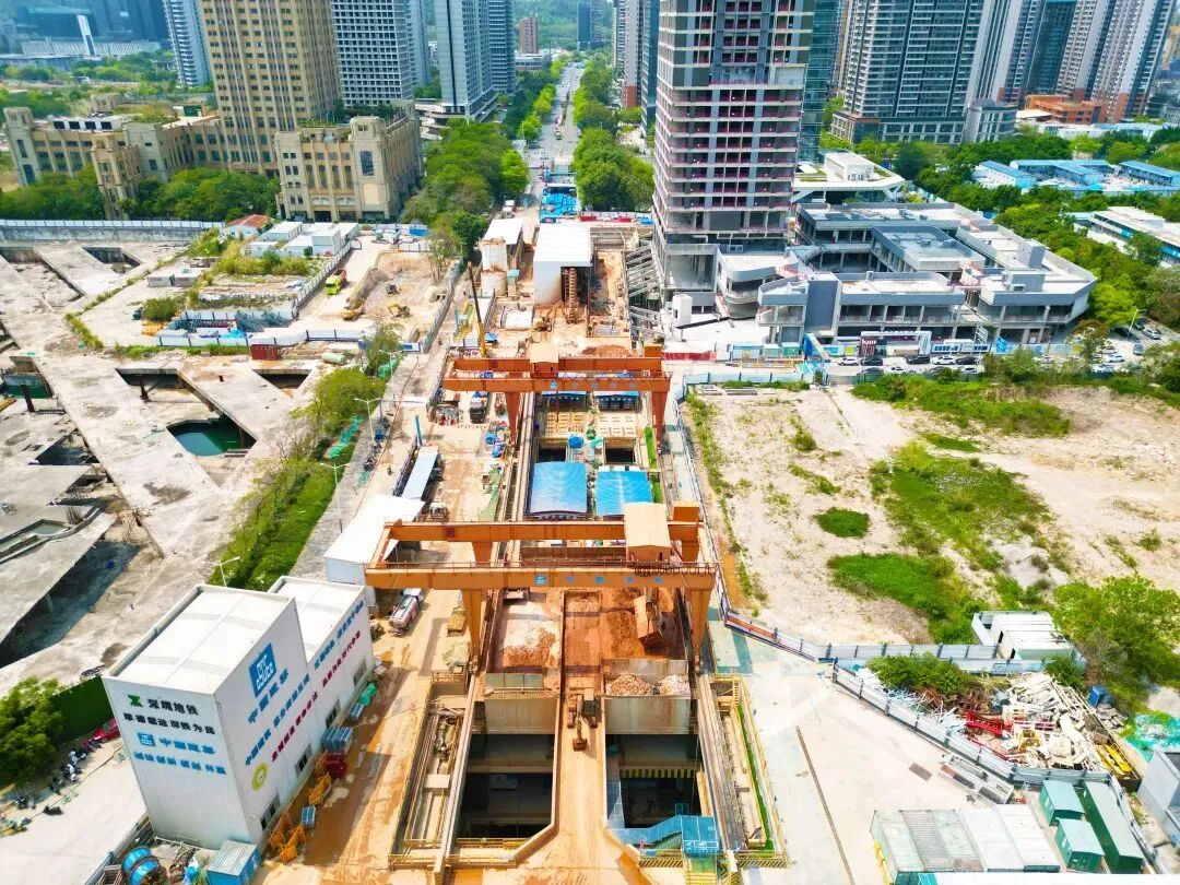 深惠城际凤岗站至大运北站区间经过东莞、深圳两市。其中,凤岗站位于东莞市凤岗镇雁湖公园东南角,大运北站位于深圳市龙岗区龙城街道。该施工区间段全长约5.2公里,包含1个工作井、2个盾构段,左线右线同步施工。建设团队提前规划,优化施工技术,有力保障了盾构施工高效推进。