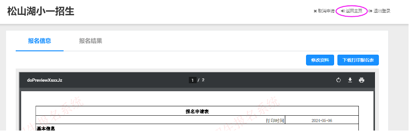 10、提交成功,家长点击返回主页可查看“报名申请”信息。