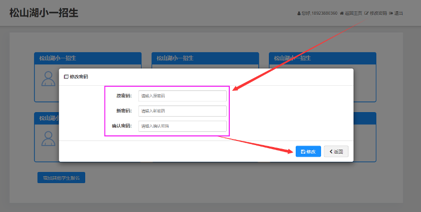 (2)注册并登录“松山湖入学管理平台”补充家长申请方及子女信息,添加子女信息时选择“起始年级”,并按要求填写“东莞市入学平台的报名号”和“东莞市入学平台注册的手机号码”后,再进一步补充所需信息资料。