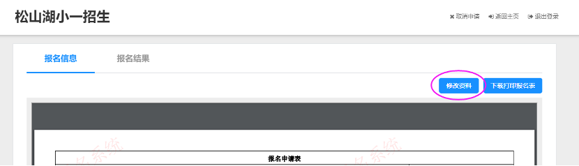1、修改资料:报名信息页面,点击右上角“修改资料”,在报名期间可修改报名资料。
