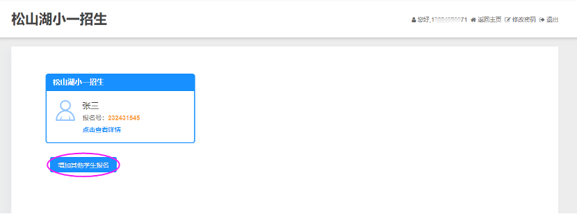 3、点击“返回主页”,报名申请页面,可增加其他学生报名信息。