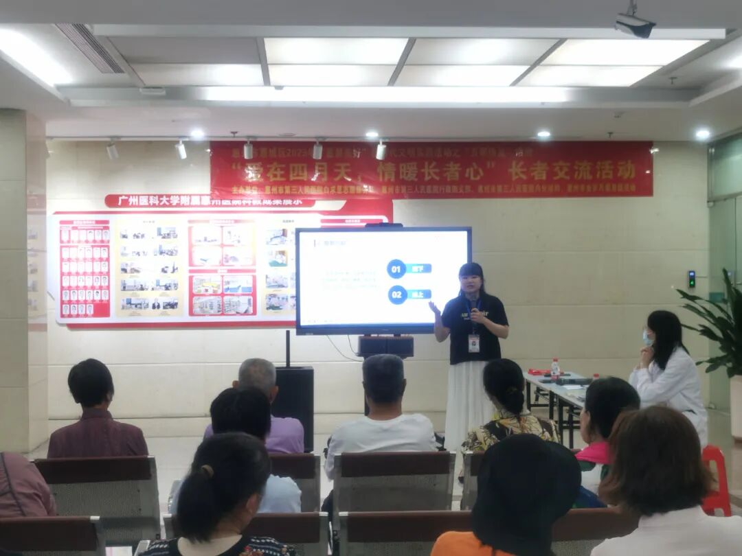 2025年4月29日,在惠州市第三人民医院举行的惠州市惠城区2025年“惠聚美好”新时代文明实践活动之“五彩纷呈”活动——“爱在四月天,情暖长者心”长者交流活动中,服务管理部主管李特谈到这个案例时,现场长者和志愿者报以热烈的掌声。