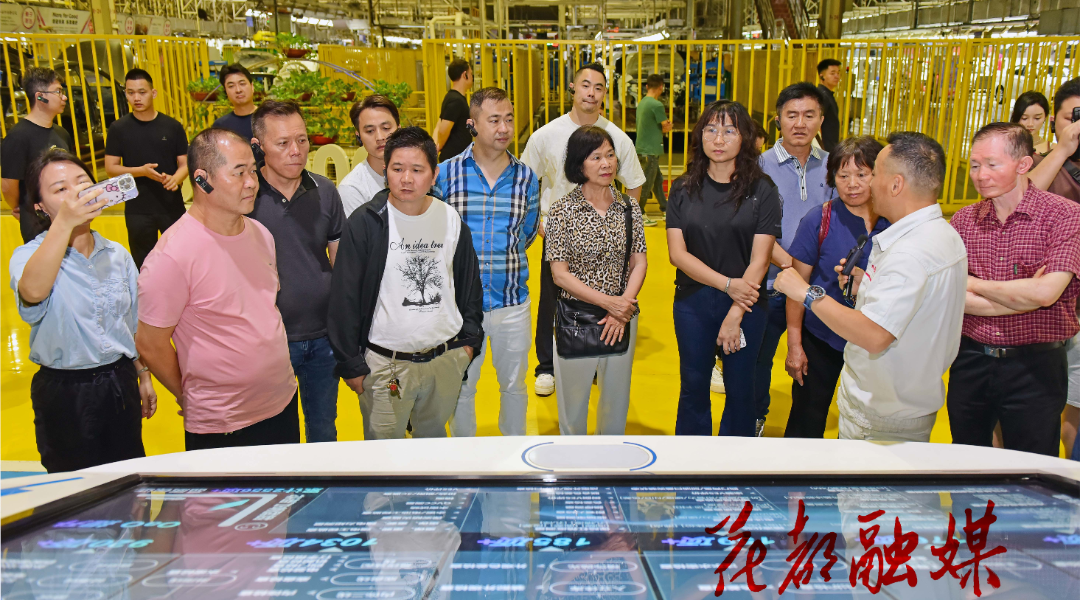 活动现场,花都侨界代表参观了东风日产花都二工厂总装车间,听取企业相关负责人对汽车生产技术的深度解读,近距离感受一辆辆汽车的诞生。只见各条生产线上,工人们各负其责,铺设线路、精准调校、性能测试……车间现场,一列列运送零配件的全自动小车来回穿梭,还有许多全自动大型机械设备参与其中,现场一片忙碌景象。