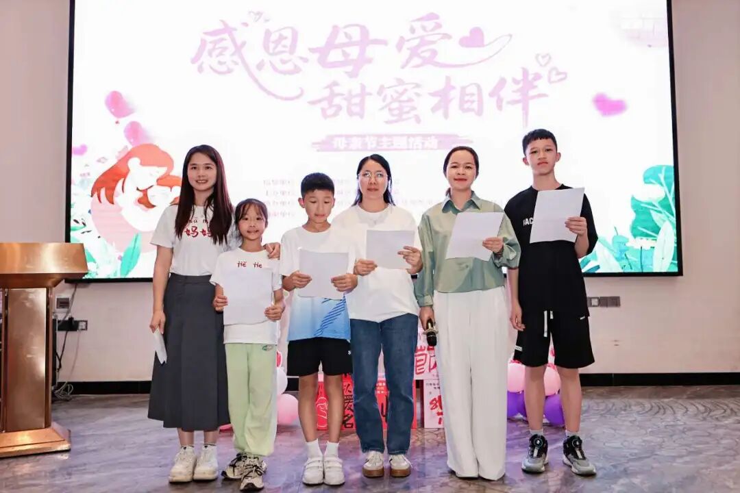 随后,亲子家庭代表共同朗诵《为你写一首诗》。孩子们用稚嫩的声音诵读对母亲的感恩,妈妈们眼含热泪、轻声应和,字句间流淌的深情感染了全场。