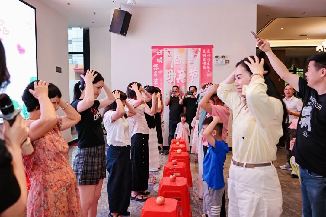 亲子互动游戏环节更是热闹非凡。《抢苹果》《快乐传情》《吃西瓜比赛》《蒙眼吃香蕉》等游戏瞬间点燃现场气氛。亲子家庭在游戏过程中尽情地奔跑、欢笑,彼此之间的感情也在游戏中得到了升华。