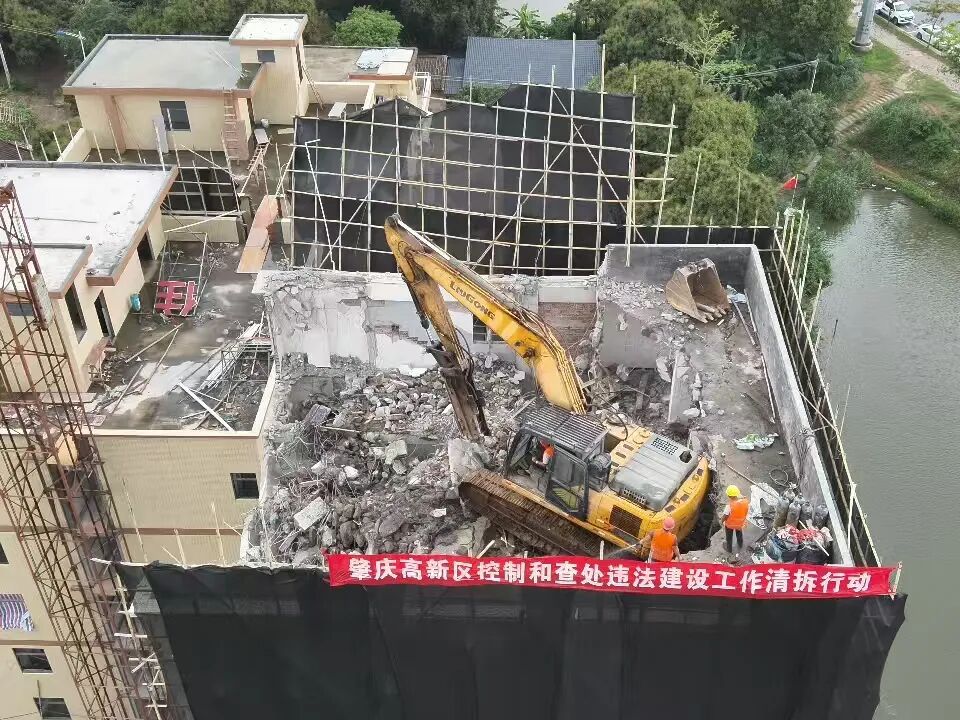 经查,涉事建筑未取得土地手续和规划许可,其擅自占用国有土地违法建设的行为严重违反了《中华人民共和国土地管理法》《中华人民共和国城乡规划法》等法律法规,存在重大安全隐患,经执法部门立案查处作出处罚决定、法院裁定强制执行,当事人仍未履行自行整改的责任。为维护司法权威,保障公共安全,5月8日,肇庆高新区组织人员对涉案建筑进行强制拆除,预计拆除违法建筑面积1400余平方米。