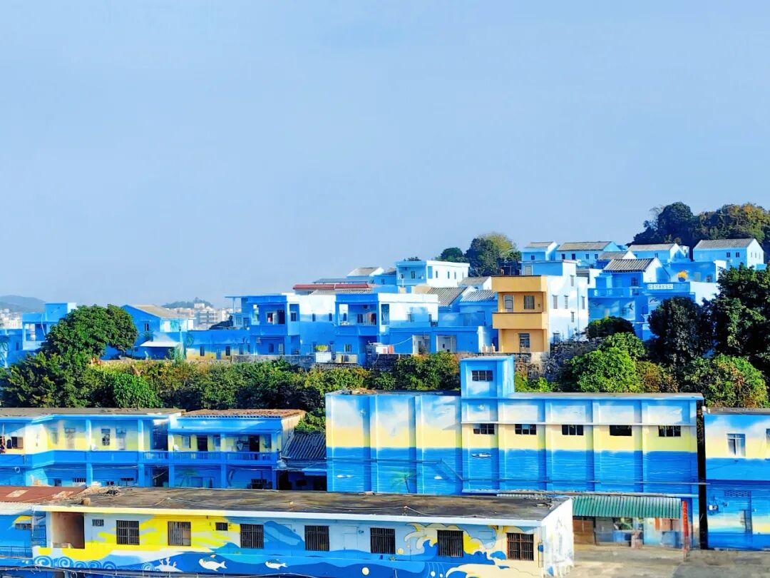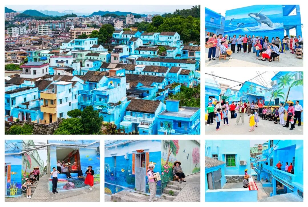 鲲鹏村海洋路沿线99间民房外立面披上“蓝装”,1.5万平方米海洋主题墙绘让渔村变身艺术长廊 陆华岳 摄