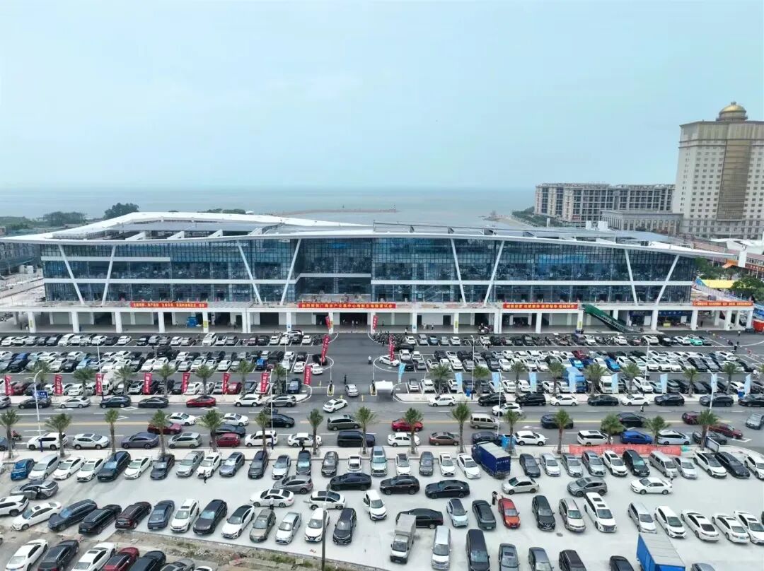 广海水产交易中心外停放着来自各地的游客车辆