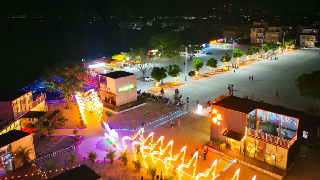 广海镇积极探索渔旅融合,打造了面积1.5万平方米的“美食街”,推动全镇9个村(社区)联合运营。其中,鲲鹏村利用省“百千万工程”典型村专项资金,打造一个集餐饮、灯光营地、网红直播间等多元要素于一体的“烟火集市”,吸引周边众多游客前来“打卡”,持续为“美食街”输送客流量。如今,“烟火集市”年租金收入24万元,村集体经济实现从“单一渔业”到“多元产业”的跨越。