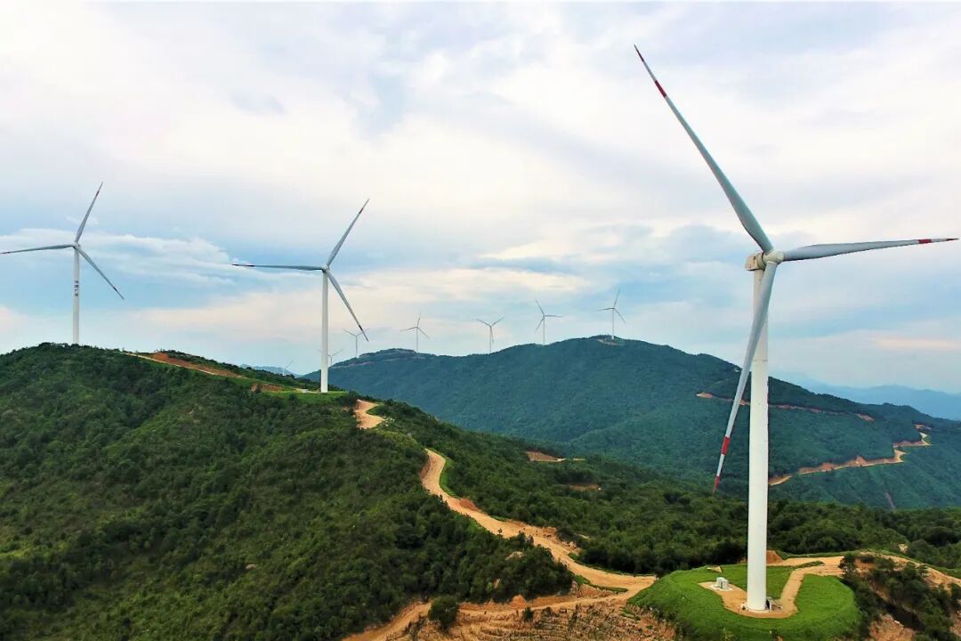 大顶山位于广东省肇庆市德庆县高良镇,主峰海拔970米,山上共有 22 台风车。在蓝天白云下,风车的转动与一望无际的山脉相互映衬,形成了一道独特的风景。