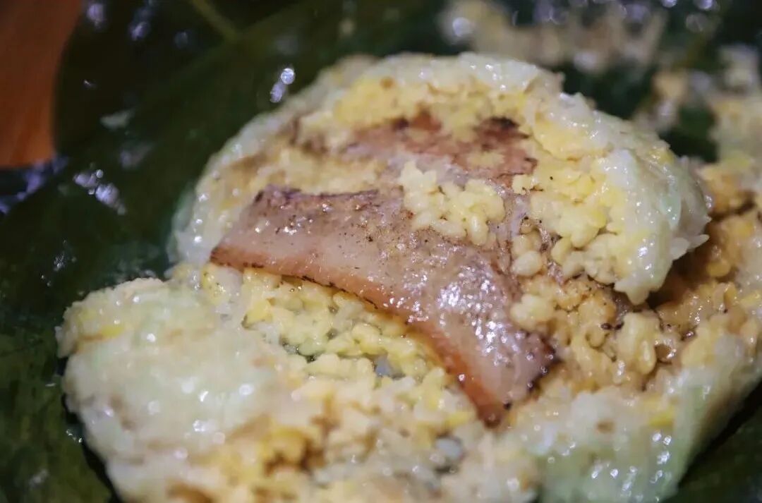 刚出锅的裹蒸粽清香四溢,糯米软糯香甜,绿豆细腻沙滑,口感甘香软滑、齿颊留香,猪肉肥瘦相间、肥而不腻,再加上冬叶的清香,让人回味无穷。