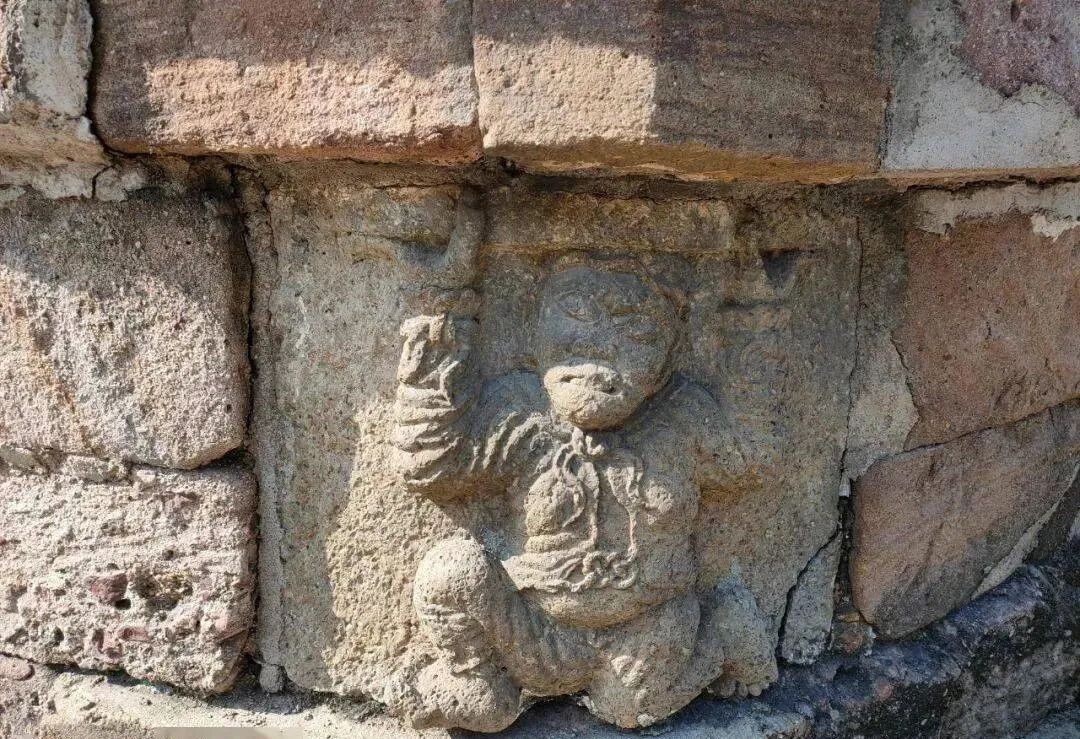 三元塔塔基须弥座用红砂岩和花岗岩砌成,塔脚八个方位各有一尊金刚力士 “托塔”,造型古朴,形态各异。
