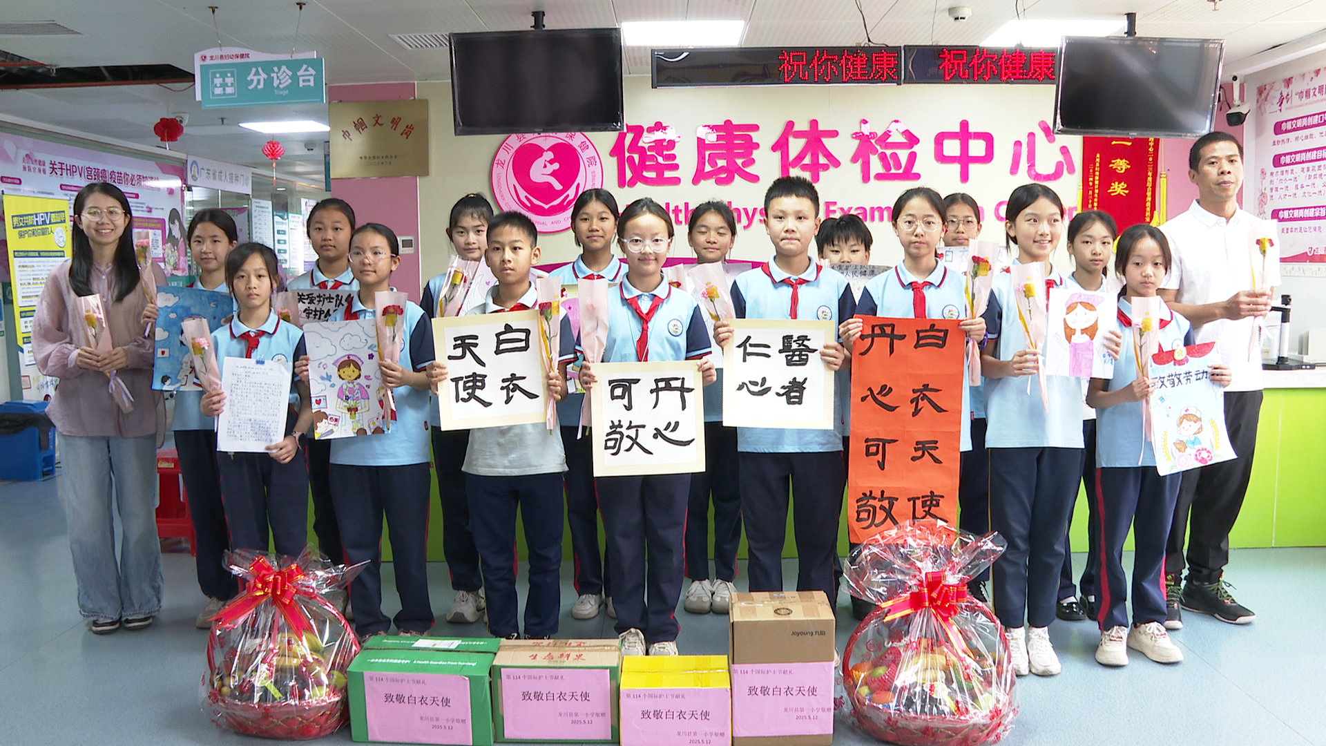 在医院新生儿科,同学们透过玻璃窗近距离观摩护士们护理工作,通过耳闻目睹,亲身感受到她们在日常工作中所付出的努力与爱心,也更加理解了“白衣天使”背后的责任与担当。这不仅是一次生动的职业认知体验,更是爱与奉献的信念传递。龙川县第一小学少先队大队辅导员黄大立对记者说:“开展致敬白衣天使活动,向奋战在一线的护士致以节日的问候。孩子们通过送祝福,送慰问等方式,表达对护士们的敬意。这不仅是一次感恩教育,更是一堂生动的社会实践课。希望孩子们以后能更加理解和尊重医护人员,学会关爱他人。”