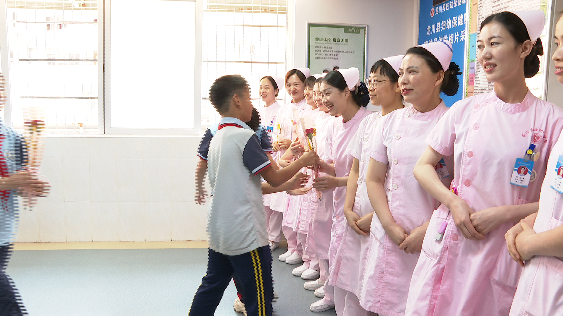为表达对医护人员的崇高敬意与诚挚感谢,5月12日,龙川县第一小学的部分师生带着亲手制作的礼物走进龙川县妇幼保健院,为坚守岗位的护士们送上最纯真的节日祝福。