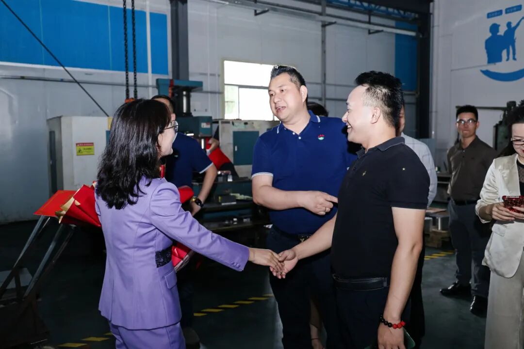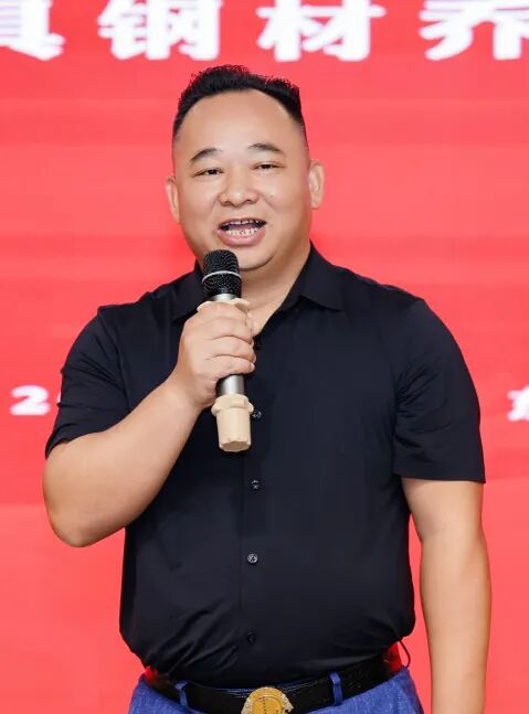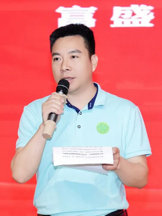 东莞市广西商会会长肖明海上台致辞。肖会长谨代表商会向周火娟女士及企业致以最热烈的祝贺。在东莞这片热土,商会始终是桂商企业的"资源池"与"智囊团",希望大家与商会共同进步成长。最后,期待全体会员以富盛金属为镜,既要做坚守主业的"深耕者",更要当拥抱变革的"弄潮儿"。