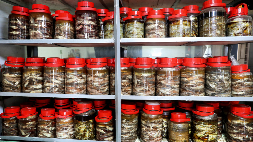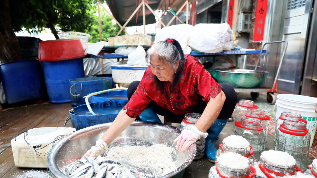 罗福制作鱼露30多年,经营着当地规模最大的鱼露商铺,很多顾客喜欢到他这里购买鱼露。罗福介绍,鱼露的制作有着季节性,制作时间一般从农历正月到休渔前。