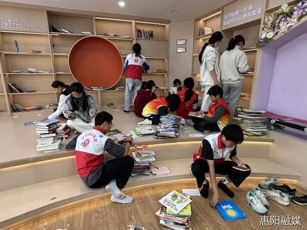 在良井镇圩镇客厅,“书香传递”图书整理志愿服务活动正如火如荼地开展,志愿者们根据书籍类别对图书进行分类编码、按序摆放,确保每一本书都能在需要时被快速找到。