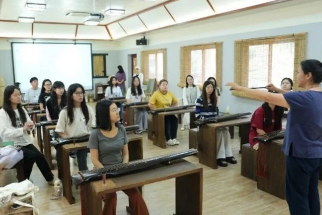古琴馆作为北师港浸大博雅教育艺术课程实践基地,既是古琴课堂的空间载体,亦是南海清音古琴社的文化阵地。课程以“全人教育”为内核,通过古琴技法与心法习练,引导学子体悟中国音乐美学与生活哲学,在丝桐雅韵中涵养中正平和之心。古琴社已培育超五百学员,定期举办节气主题雅集,将琴音与自然节律交融,演绎“天人合一”的东方智慧。更有毕业音乐会、文创设计展、琴旅研学等创新项目,让传统琴道焕发新生。这里不仅是技艺传承的殿堂,更是礼乐精神的当代活化空间。