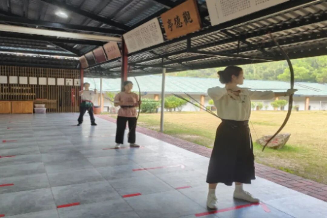 中华射道是北师港浸大的特色选修学分课程,迄今已教学12年。其文化源头是古代的射礼,即在射箭的过程中融入礼乐的形式,体现敬重其事、善始善终、君子之争的人文精神。在习得传统射箭技术的同时,体验做事的正面态度与方法,启发学生提升认知维度。教学理念是:“艺成而下,德成而上”。学习内容包括:射法八节、进退礼仪以及《礼记·射义》文本导读,裨益学生由“下学”性质的射艺,自修自立,“上达”不已,进而安身立命。目前的教学设施有:一间弓箭文物与文化展馆(一射道馆),一个占地约900平方米的射道教学专用场地(一阳射圃)。