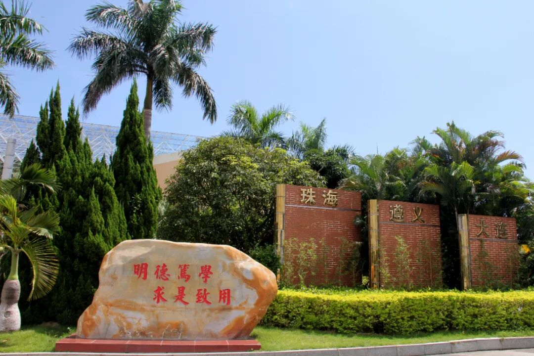 在遵义医科大学珠海校区,校训石静静矗立,“明德笃学,求是致用”八个大字,从大连到遵义再到珠海,见证着学校的奋进与成长。椰林大道如诗意画卷,黔园的古朴韵味让人仿佛穿越时空。现代感十足的综合楼、教学楼、技能楼、实验楼与自然景观完美融合。在这里,你能感受到每一位遵医学子在医学道路上信念坚定、顾全大局、顽强拼搏、严谨治学、开拓创新的遵医精神。