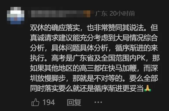 奥一新闻注意到,关于高三学生应该实行单/双休,网友们对此持有不同的看法。