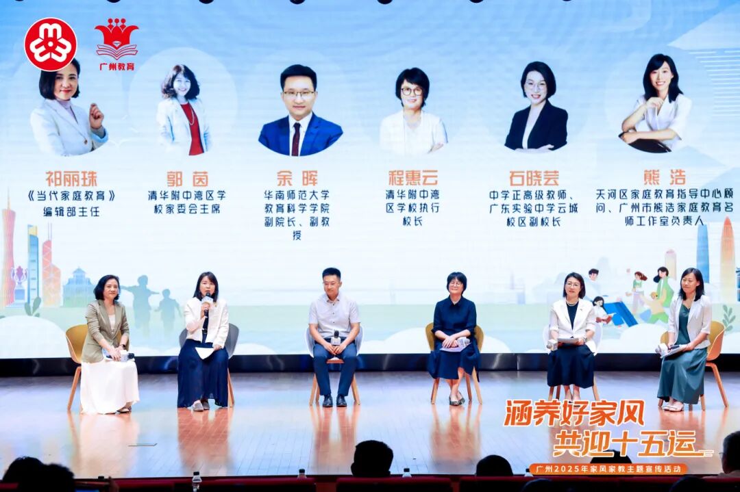 活动现场,清华附中湾区学校孩子及家长表演了家校协同育人情景剧《一路繁花相伴》,引发大家对家校协同育人思考。活动还举办了“AI时代下的教联体协同育人”沙龙,华南师范大学教育科学学院副院长余晖、清华附中湾区学校执行校长程惠云、广东实验中学云城校区副校长石晓芸、天河区家庭教育指导中心顾问熊浩、清华附中湾区学校家委会主席郭茵等专家和家长代表,共同探讨如何利用数智技术赋能家校社共育,助力构建更加科学、高效的协同育人体系。