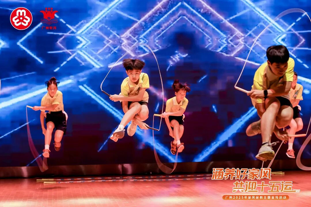 活动现场,花都区花东学校跳绳少年表演《绳韵传家》,展现“一根跳绳托起乡村少年体育梦”的励志故事。奥运冠军杨健远家庭分享奋斗故事,诠释体育精神代际传承。