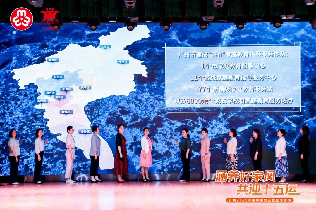 在5月15日的广州家风家教主题宣传活动现场,随着“3+N 家庭教育指导体系” 数字地图的点亮,全市家庭教育服务网络全面升级。同时,通过开展“羊城父母学堂”课程(约600个),邀请法律专家郑子殷权威解读《广东省家庭教育促进条例》内容,为家长提供科学养育的权威指导,进一步提升家长的法律意识和科学育儿能力。