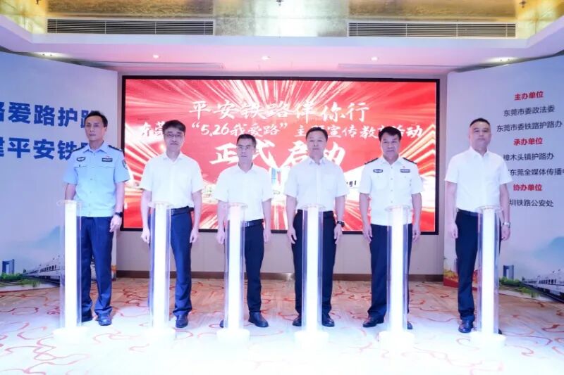 广东省护路办、东莞市委政法委、市铁路护路成员单位和铁路相关部门以及沿线26个镇街代表聚焦铁路安全治理创新,现场观摩樟木头镇打造的全市首个“火车站公共法律服务室”“路地联勤化解矛盾纠纷工作站”“平安建设促进会火车站分会”,共探铁路安全与法治融合新路径,共同启动“5•26我爱路”主题宣传教育活动。