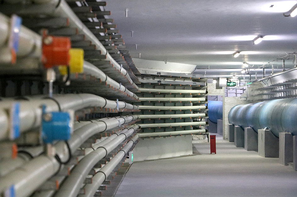 ▲肇庆新区城市地下综合管廊内部