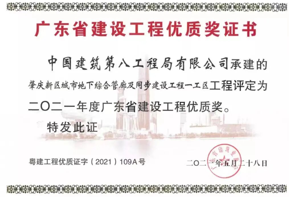其中《城市地下综合管廊施工技术研究与应用》获中国施工企业协会工程建设科学技术进步一等奖,为全国管廊项目的建设提供了先进经验。