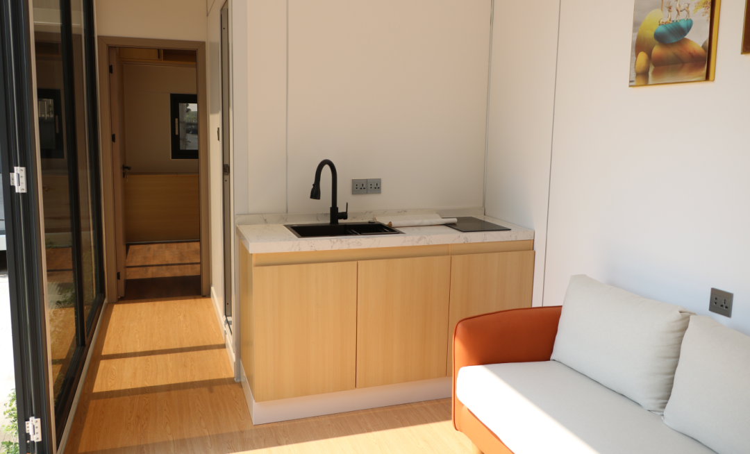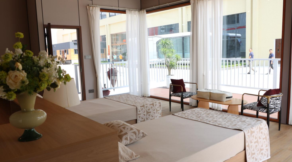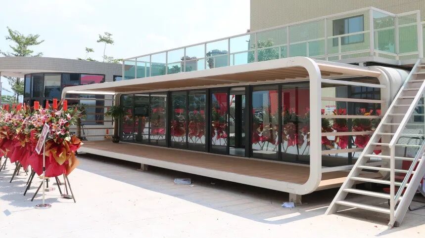 麻雀虽小,五脏俱全。每一款预制房屋产品在兼具靓丽外观的同时,都做到了厕所、卧室、客厅和水电消防设施等一应俱全。其中,太空舱、苹果舱等系列产品畅销国内外市场。