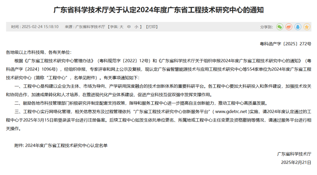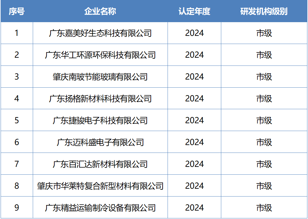 △2024年度广东省工程技术研究中心认定名单肇庆高新区上榜企业