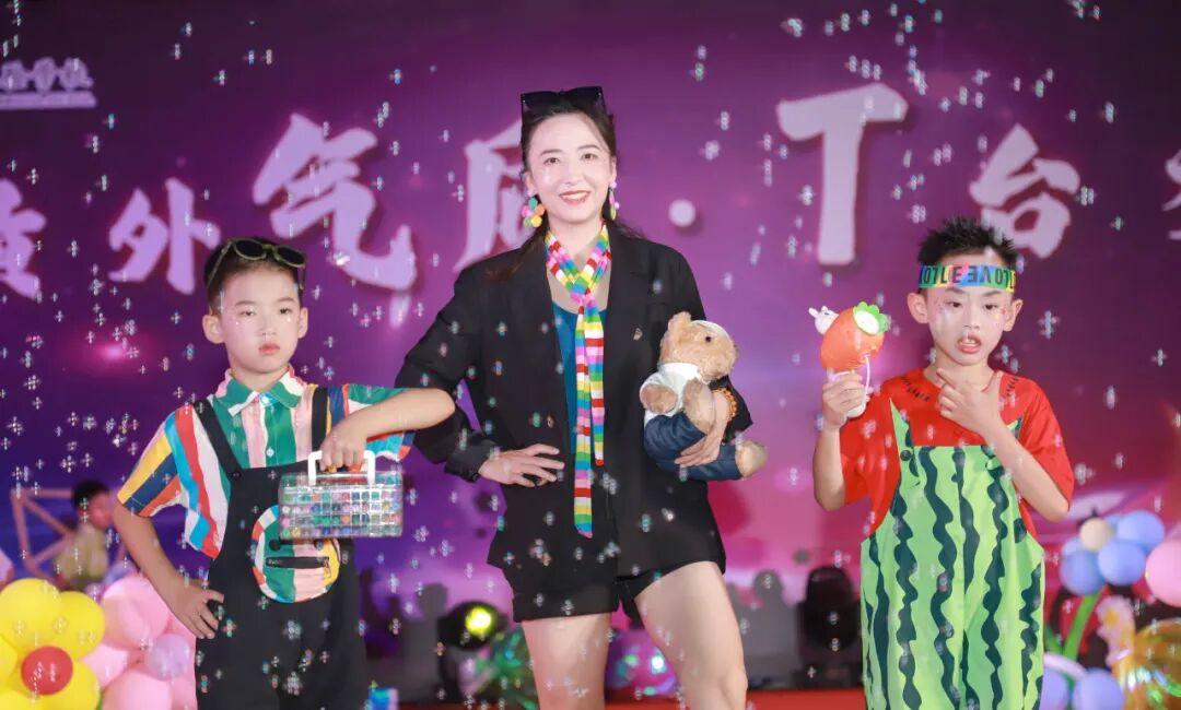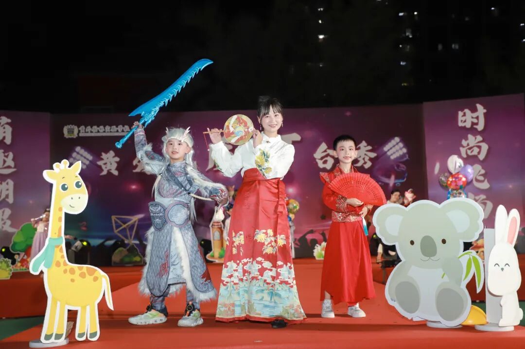 舞台上,各班学生依次登场,带来风格各异的表演。孩子们身着如梦幻调色盘般的服装,将童年的奇思妙想展现得淋漓尽致;有的以高腰喇叭裤与涂鸦牛仔外套碰撞出复古火花,解锁港式街头的独特魅力;有的将童话角色“穿越”现实,书写童真传奇;《国风》表演,带领观众感受中国传统服饰的华美与文化内涵;民族 T台秀《锦绣中华,盛世和韵》,让五十六个民族风情在舞台上绽放。亲子同台走秀环节更是将活动推向高潮,家长牵着孩子的手,在舞台上传递着温暖的爱与支持。